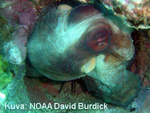 Seattlen akvaarion akvaristien tyrmistykseksi heidän hoidokkinsa ovat käyneet myös samassa altaassa asuvien metristen haiden kimppuun. Nopealla huitaisulla mustekalat kietaisevat saaliin lonkeroonsa ja vievät sen sitten lonkeroiden keskellä sijaitsevaan suuhun. Nokkamaiset leuat iskeytyvät saaliiseen, joka lamaantuu leukojen erittämästä myrkystä.